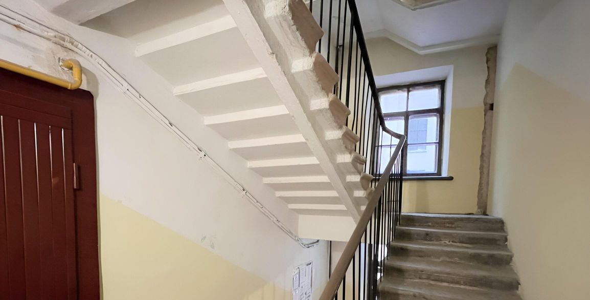 •Парадная ведущая в квартиру хранит отпечатки ушедших эпох и ждет своей реставрации. Но именно это напоминает: вы входите в дом с историей. А ваш личный мир начинается за порогом квартиры, где царит тишина и уют, и продолжается во дворе, чей фасад тоже полностью прошел капитальный ремонт — вы оцените эту элегантную архитектуру.