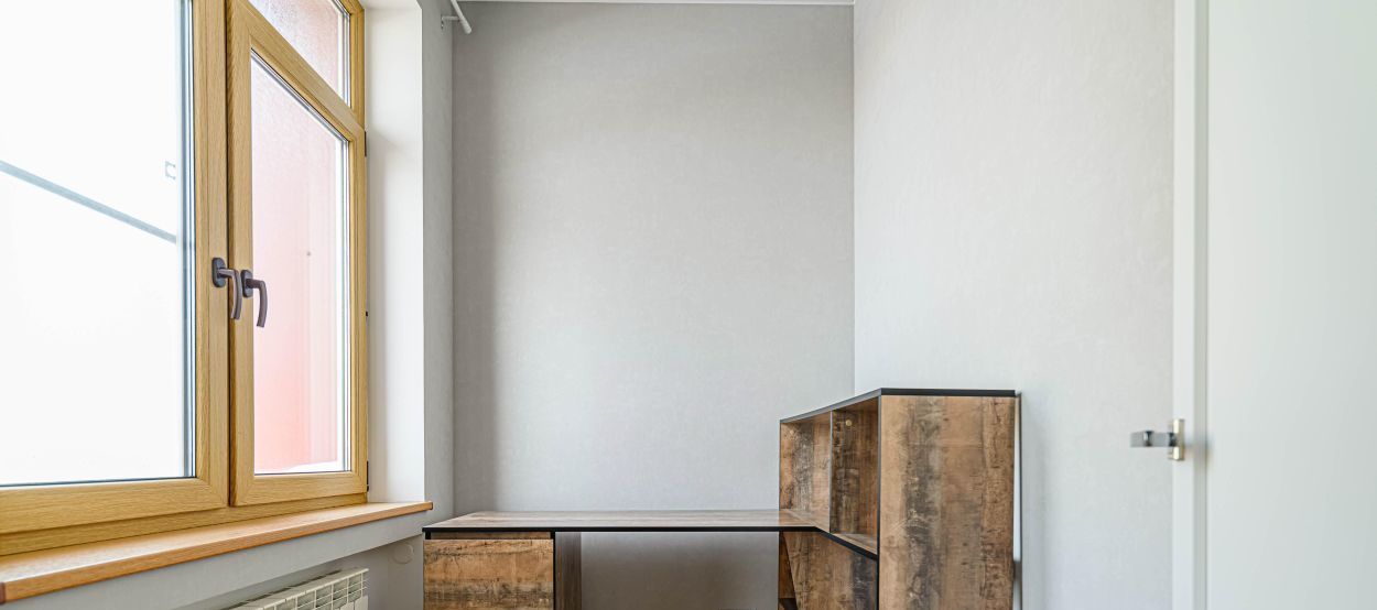 Небольшой кабинет с окном - место для уединения и решения рабочих задач.