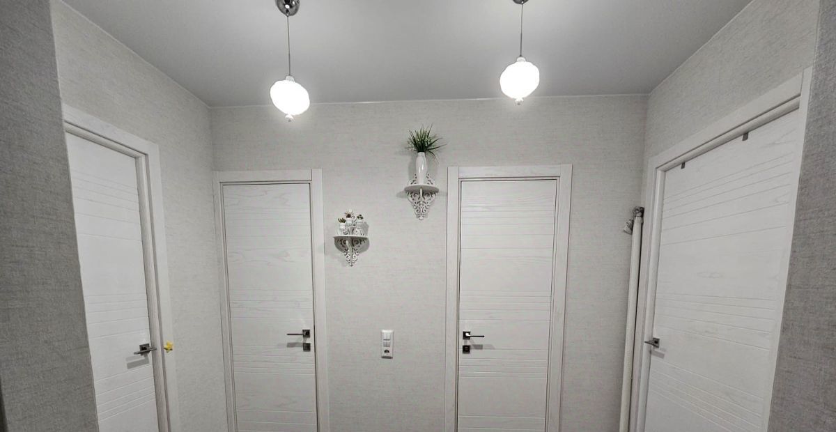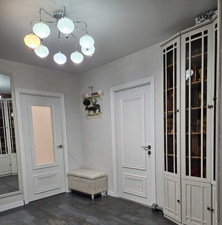 Просторная прихожая с встроенным шкафом для верхней одежды.