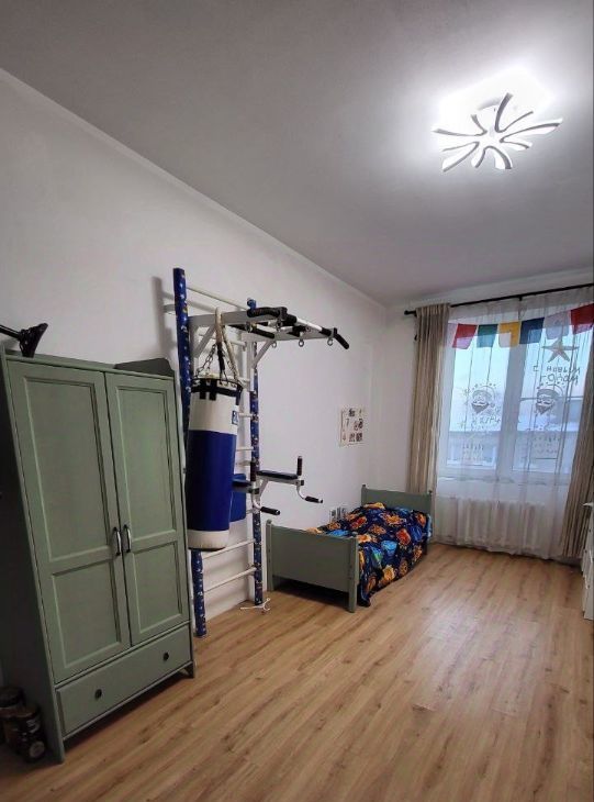 Две отдельные спальни 14.5м2 и детская 19 м2 . Квартира очень теплая, светлая, уютная, потолки 3,10 метра!!! В ванной теплый пол, тропический душ!!! В спальне система хранения Икея.
