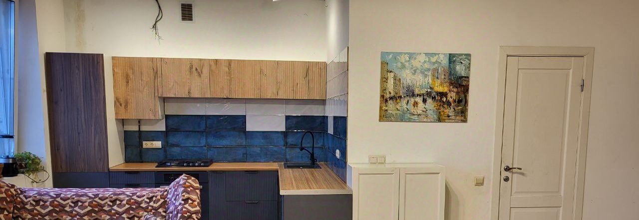 Супер просторная и шикарная кухня-гостинная 33 м2 с круглым столом, огромная кухонная зона система хранения, посудомоечная машина, духовка,варочная панель, холодильник, фильтр Аквафор!