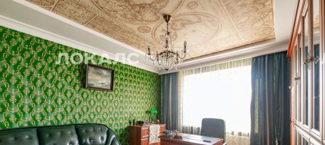 Планировка включает: спальную комнату с выходом на лоджию, гостиную-столовую, просторную кухню, кабинет, совмещённую ванную комнату, гардеробную и гостевую туалетную комнату.