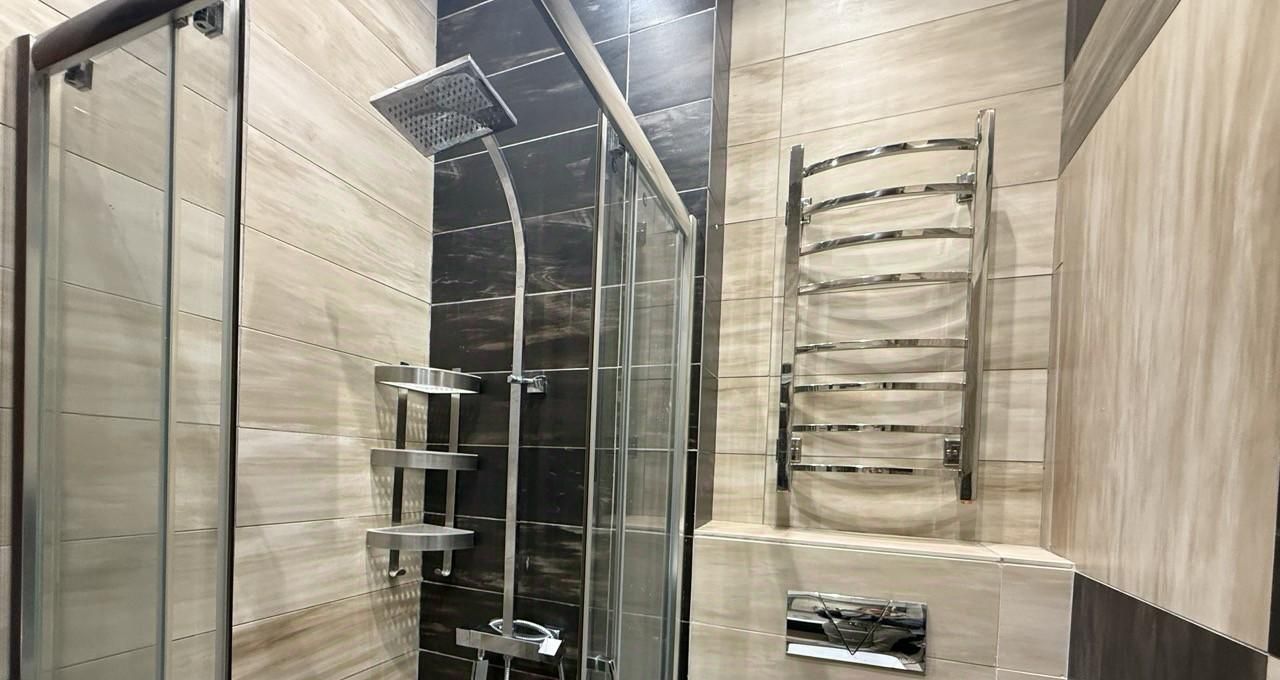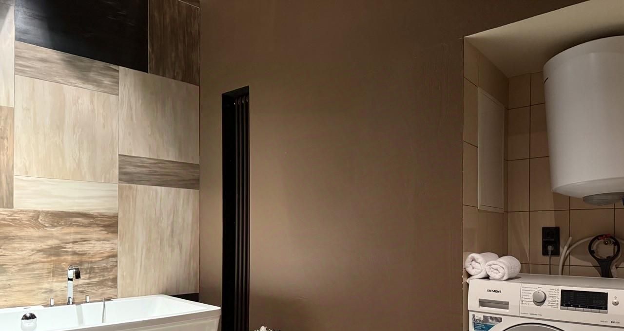 2 ванные комнаты (одна большая с ванной, двойной раковиной, стиральной машиной и вторая с душевой кабиной и раковиной);
