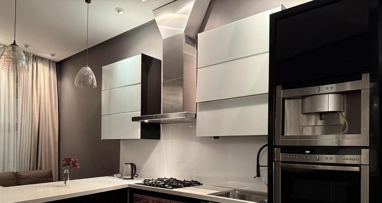 Оборудована всей мебелью и техникой (в том числе, посудомоечной, стиральной и кофе-машиной, духовым шкафом, бойлером);
