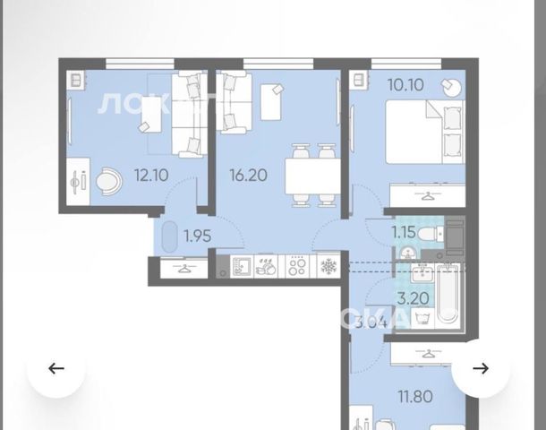 1-комнатная квартира: Санкт-Петербург, Петровский проспект, 26к2 (41.2 м²)