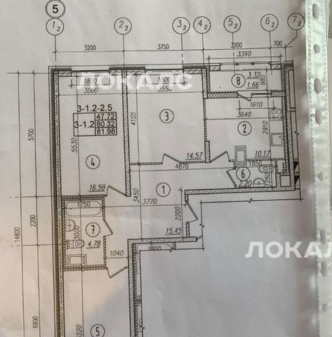 Общая площадь квартиры составляет 80 кв.м. В ней три комнаты: гостиная, 2 спальные комнаты.