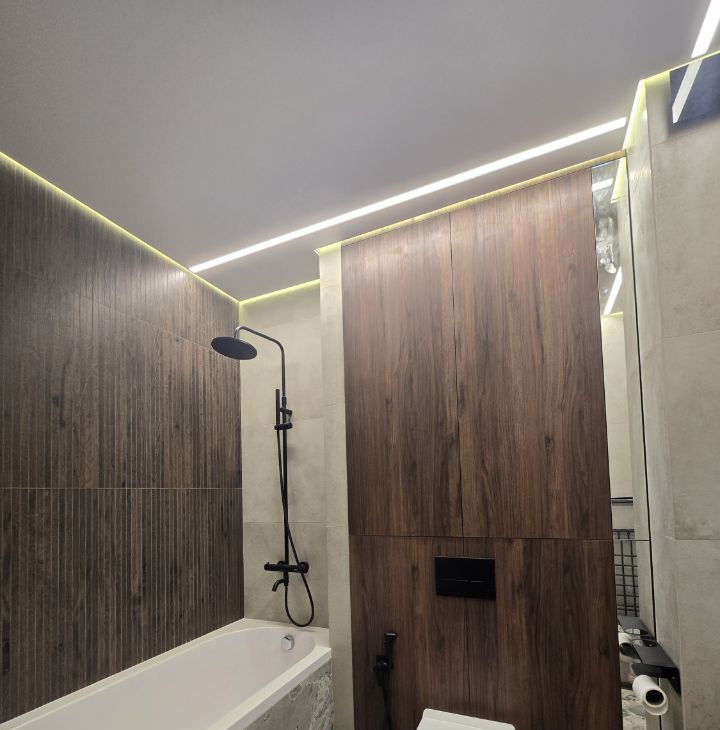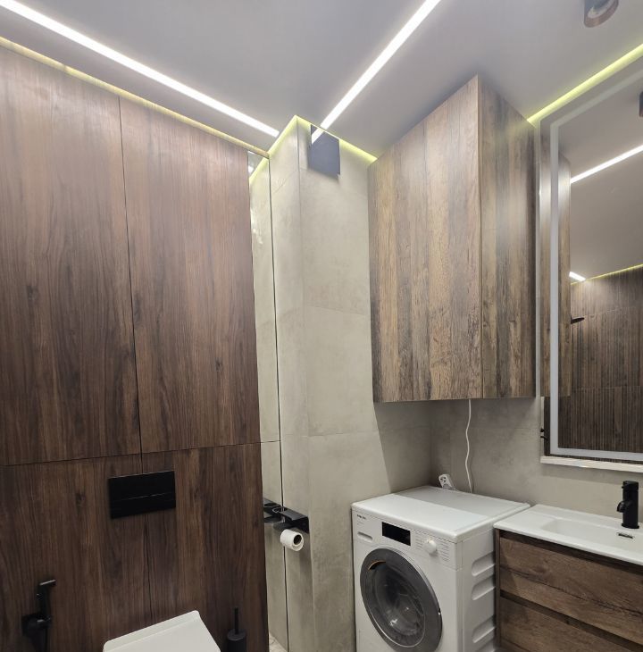 Ремонт в квартире современный. Весь кафель на полу с теплым полом.