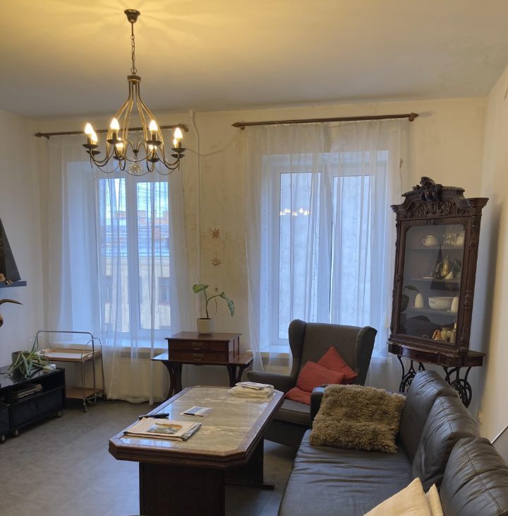 Сдается просторная 3-комнатная квартира площадью 90 кв. м в историческом доме 1876 года постройки. Квартира находится на последнем, 6-м этаже кирпичного дома с лифтом. Жилая площадь — 56 кв. м(26+20+10) кухня — 10,6 кв. м. Высокие потолки более 3.6 метра создают ощущение простора и свободы. А эксклюзивный дизайн квартиры , выполненный с высоким художественным вкусом, придаёт ощущение уюта и эксклюзивности. Большие окна выходят в большой двор, что обеспечивает тишину, свет и спокойствие. Квартира с дизайнерским ремонтом и полностью готова для комфортного проживания арендаторов. На кухне и в комнатах есть историческая, дизайнерская и необходимая для жизни мебель. Из техники в вашем распоряжении: холодильник, посудомоечная машина, телевизор и стиральная машина. Ванная комната оборудована ванной, раздельный туалет с раковиной для мытья рук. Интерьер выполнен художником в современном стиле, что делает квартиру уютной и стильной.