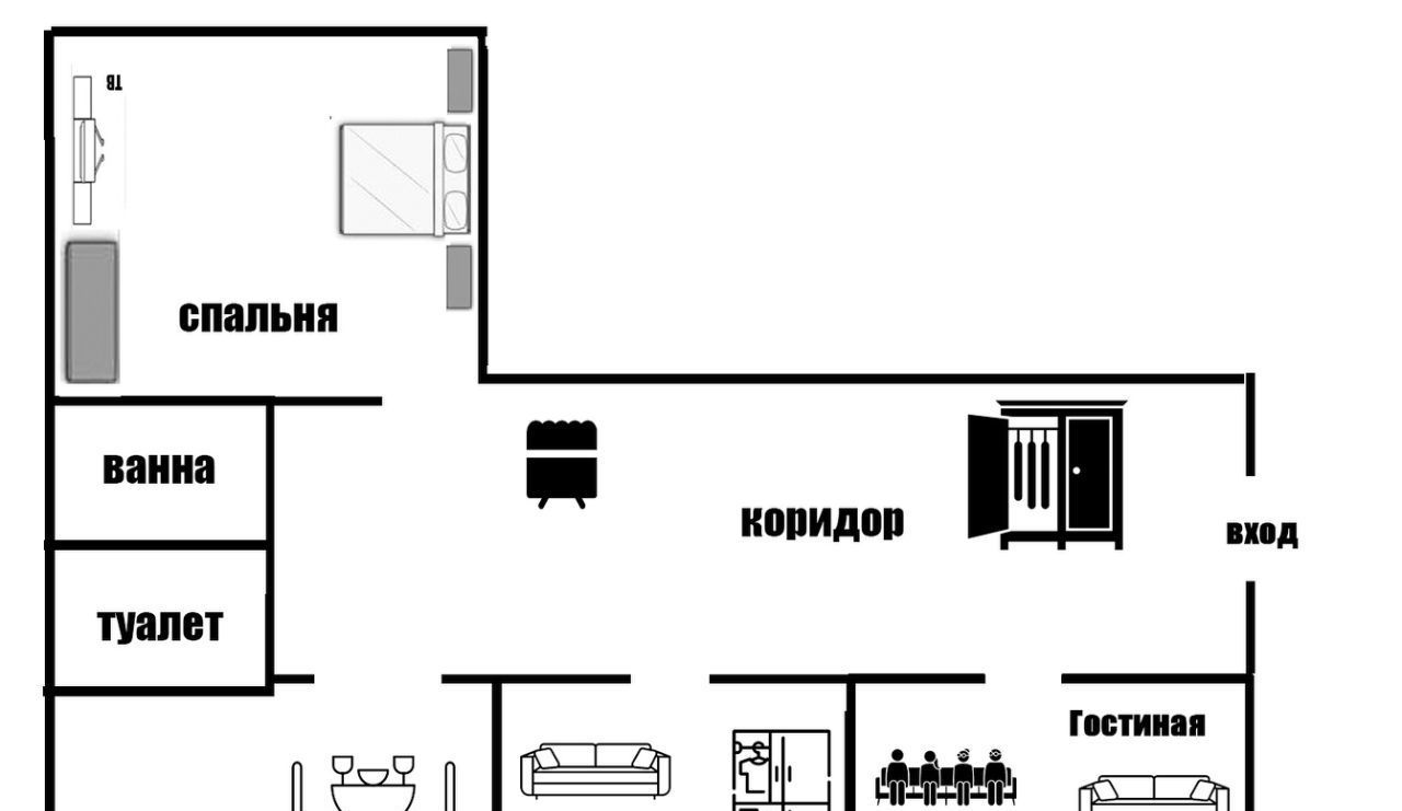 — Три изолированные комнаты: спальня, гостиная и отдельная комната с двухъярусной кроватью