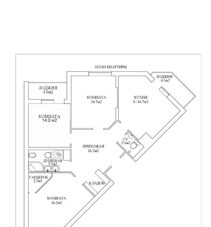 Три жилые комнаты: 18.4 м2; 14.7 м2; 14.0 м2.