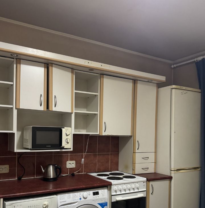 Кухня со всем необходимым: стиральная машина, холодильник, посудомоечная машина, микроволновка, чайник, стандартный набор новой посуды. Диван угловой.