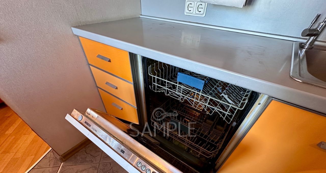 - Встроенная кухня, совмещенная с гостиной, с посудомоечной машиной, вытяжкой, плитой, духовкой и обеденным столом;