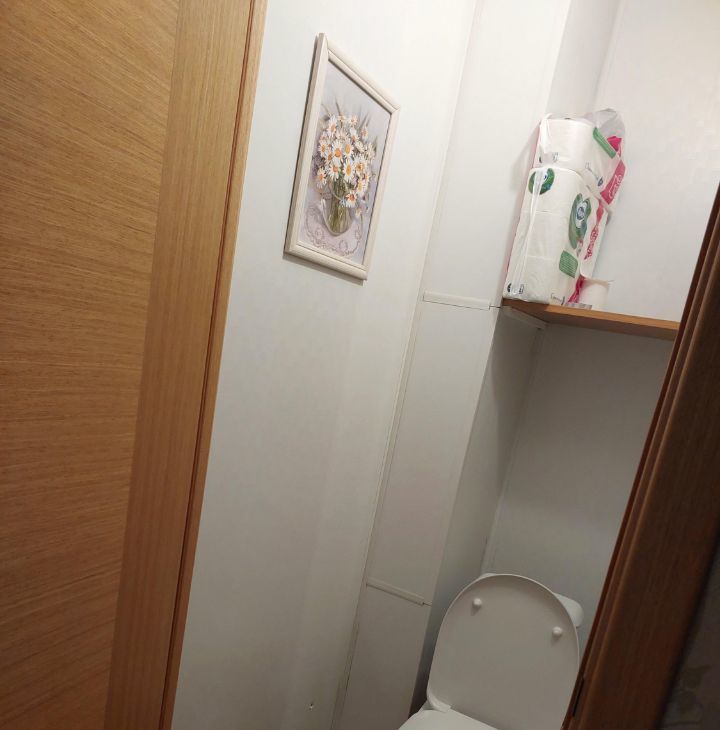 Санузел раздельный, оформлен плиткой. В комнатах ламинат, в коридоре и кухне линолеум. Шпонированные двери. Лоджия застеклена. Квартира находится на шестом этаже десятиэтажного панельного дома, построенного в 1989 году.