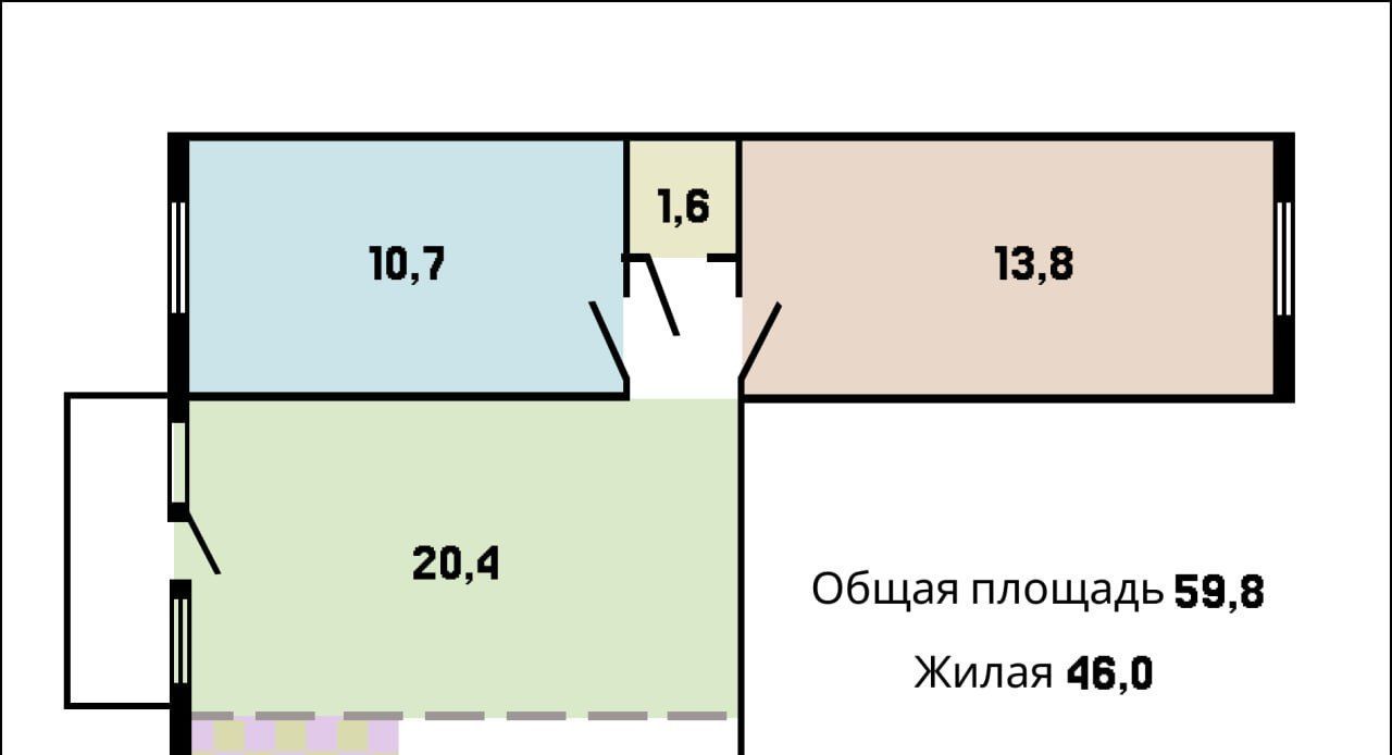 3-к кв. Санкт-Петербург ул. Софьи Ковалевской, 13К4 (59.8 м²)
