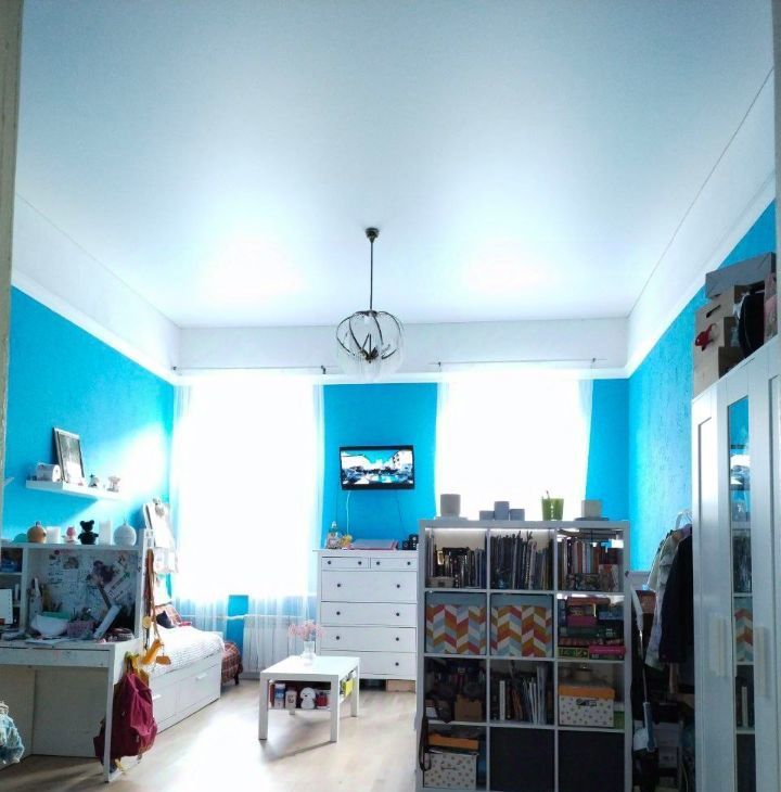 Вторая комната 29,1 м2, сделан ремонт, натяжной потолок, стеклопакеты, пол.