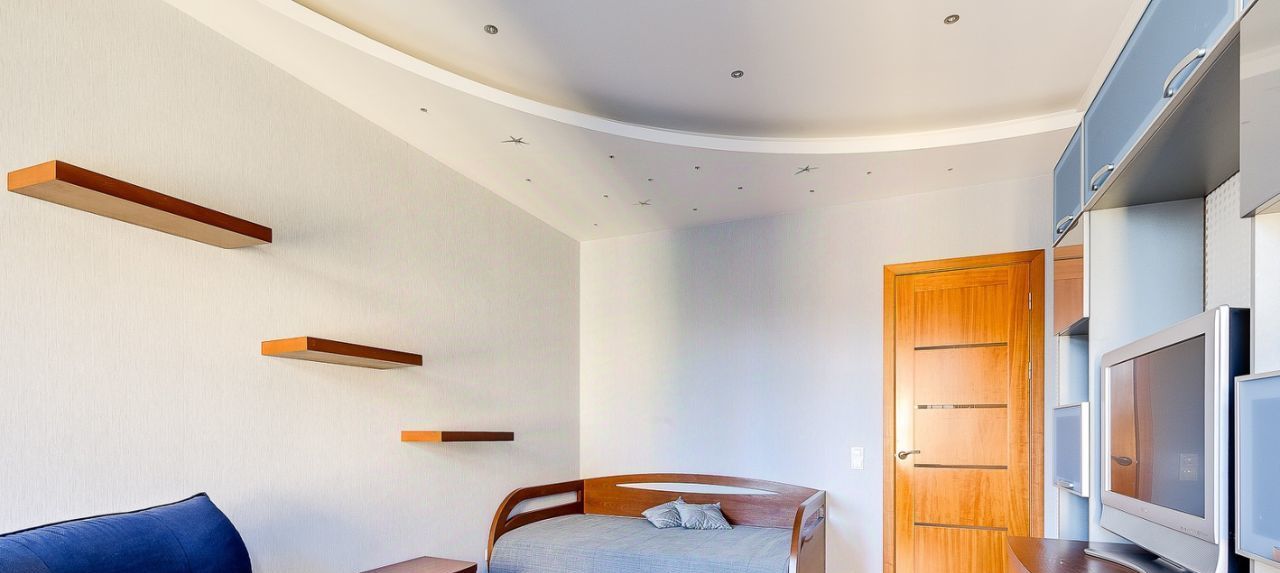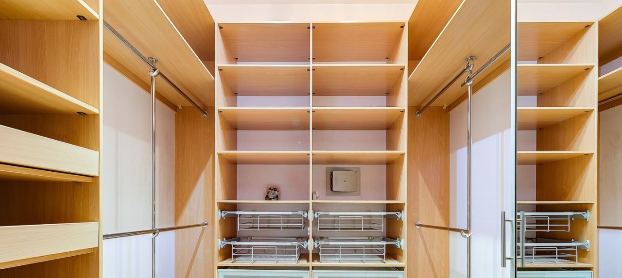 Спальня, детская комната, кухня, совмещенная с гостиной, две ванные комнаты, просторная прихожая, гардеробная 12 м2.