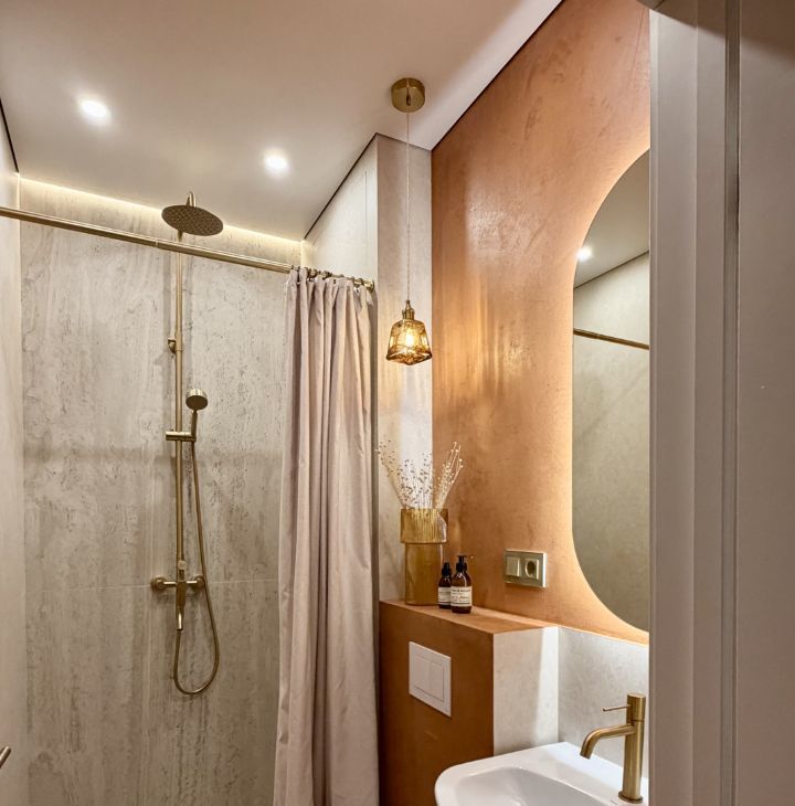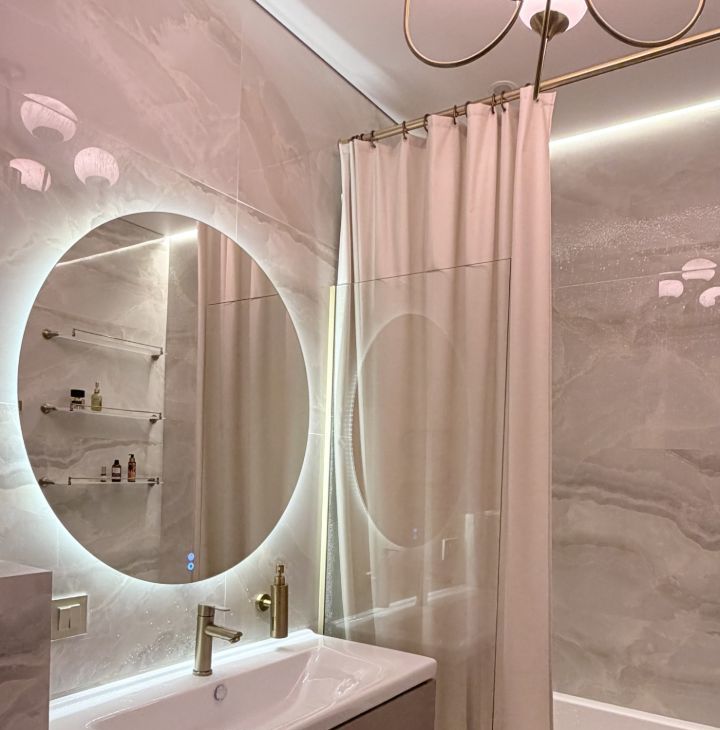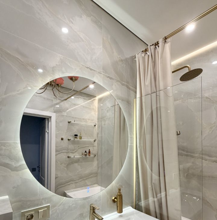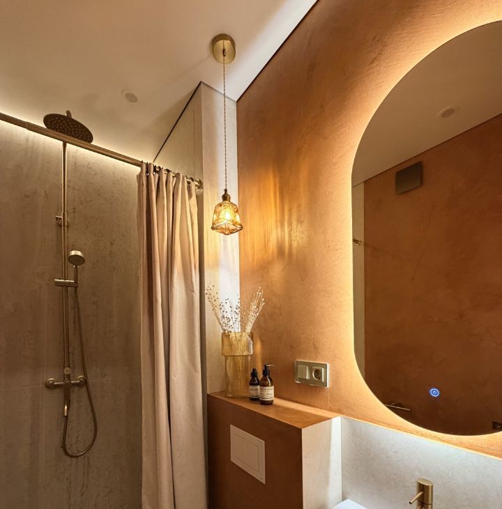 Ремонт делали для себя, продаем в связи с расширением. Применены качественные материалы: инсталляции ТЕСЕ, теплый пол Termo, микроцемент, паркетная доска, крупноформатный керамогранит. Есть разнообразные подсветки для разных сценариев освещения и атмосферы.