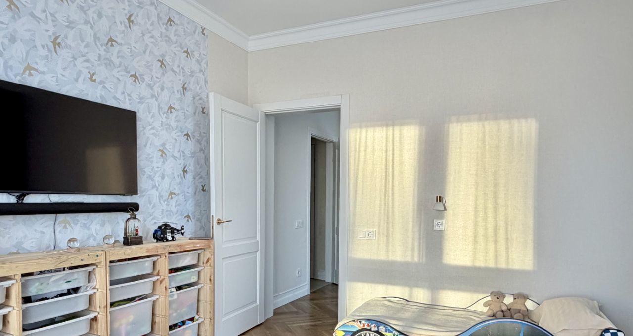 Квартира тихая, соседи только с одной стороны. Самый верхний этаж. Благодаря монолитным стенам слышимость низкая даже внутри квартиры между комнатами.