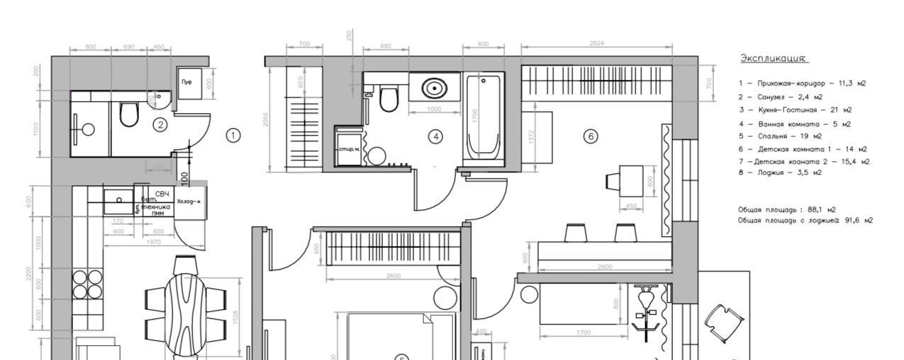 3-к кв. Санкт-Петербург ул. Среднерогатская, 10к1 (88.0 м²)