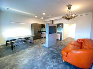 Кожаный раскладной диван Mobel&Zeit, телевизор Samsung 75, биокамин — уют гарантирован.