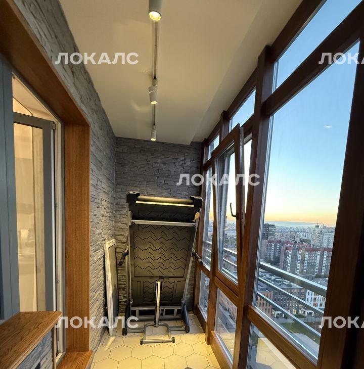 Утепленный балкон с панорамными окнами, теплый пол, установлена профессиональная беговая дорожка.