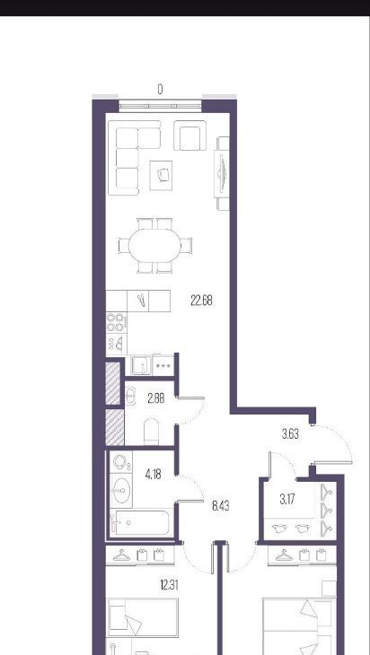 3-комнатная квартира: Санкт-Петербург, проспект Юрия Гагарина, 25 (71.1 м²)