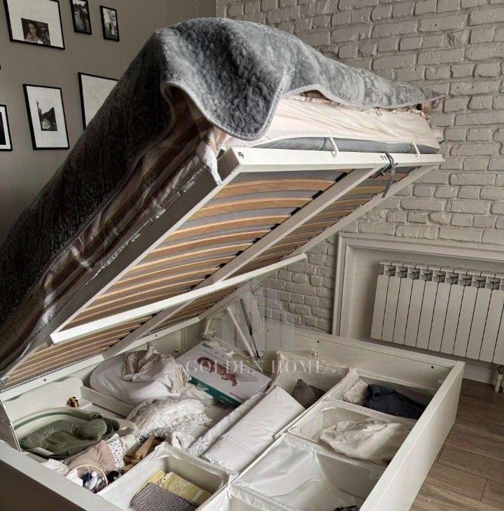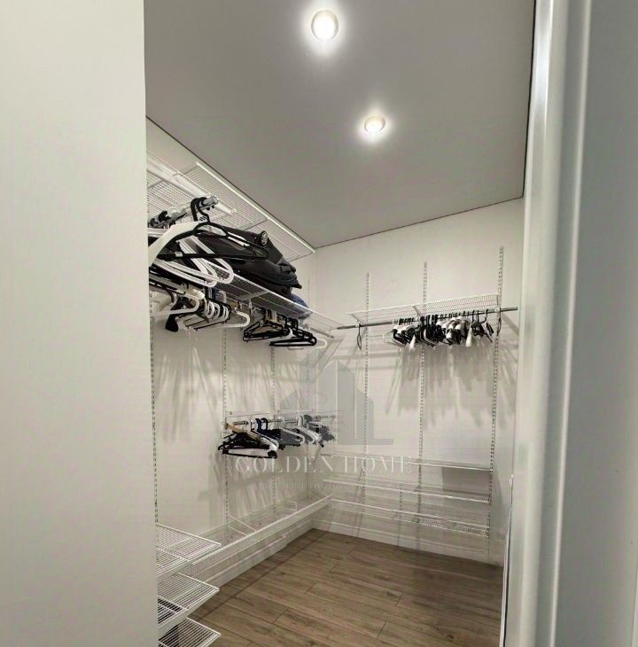 Основная спальня. Кровать кингсайз с подъемным механизмом и собственной большой гардеробной комнатой. В гардеробной можно установить сущильную машину.