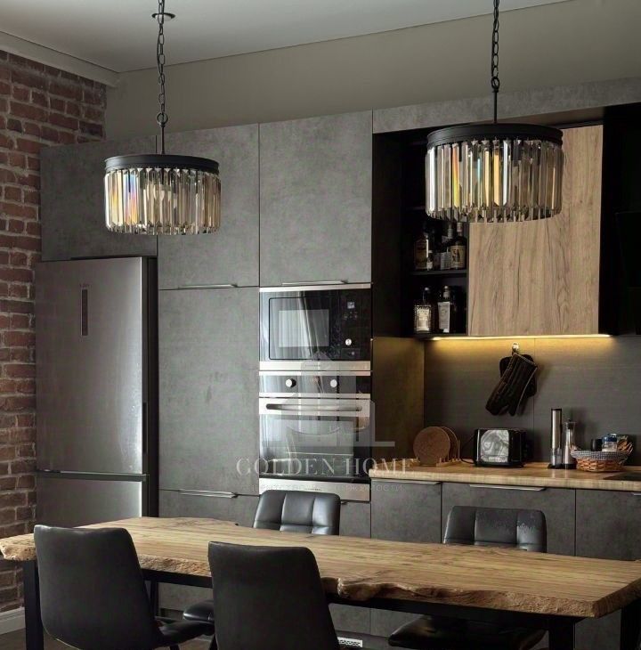 Кухня укомплектована всей техникой (вытяжка, свч, духовка, плита, посудомойка, встроенный фильтр для питьевой воды и измельчитель мусора в раковине).