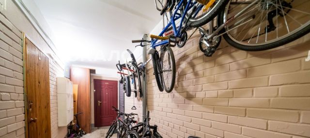 - Квартира расположена на лестничной площадке, которая делится на 2 части между собственниками, что создает дополнительное пространство для хранения велосипедов, детских колясок, самокатов.На площадке также установлена обувница и двустворчатый шкаф для верхней одежды.