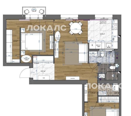 В квартире останется вся мебель и техника, включая ПММ, духовой шкаф с СВЧ, три тв, стирально-сушильную машину, комплект сигнализации Гольфстрим и прочее.
