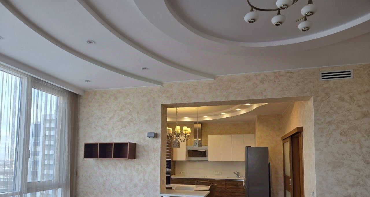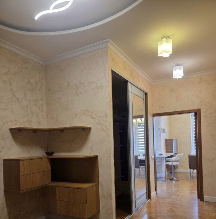 Для пары, для семьи с детьми просторная 4-х комнатная квартира после перепланировки (3 изолированные полноценные комнаты+просторная гостиная 26 метров+большая кухня 17метров) в доме премиум-класса, дизайнерский ремонт, качественная бытовая техника, тёплые полы в 2-х с/узлах и на лоджии(светлая, просторная 10 кв. м), 3 кондиционера(в спальне, гостиной, на лоджии), бойлер в постирочной, фильтр на воду общий и отдельный на питьевую воду на кухне. В доме подземный паркинг(за отдельную плату), в/наблюдение, охрана, фитнес центр, внизу ТК "Космос", в шаговой доступности д/сад, несколько школ, гипермаркет Окей. +КУ, залог можно разбить на два месяца.