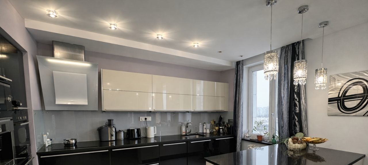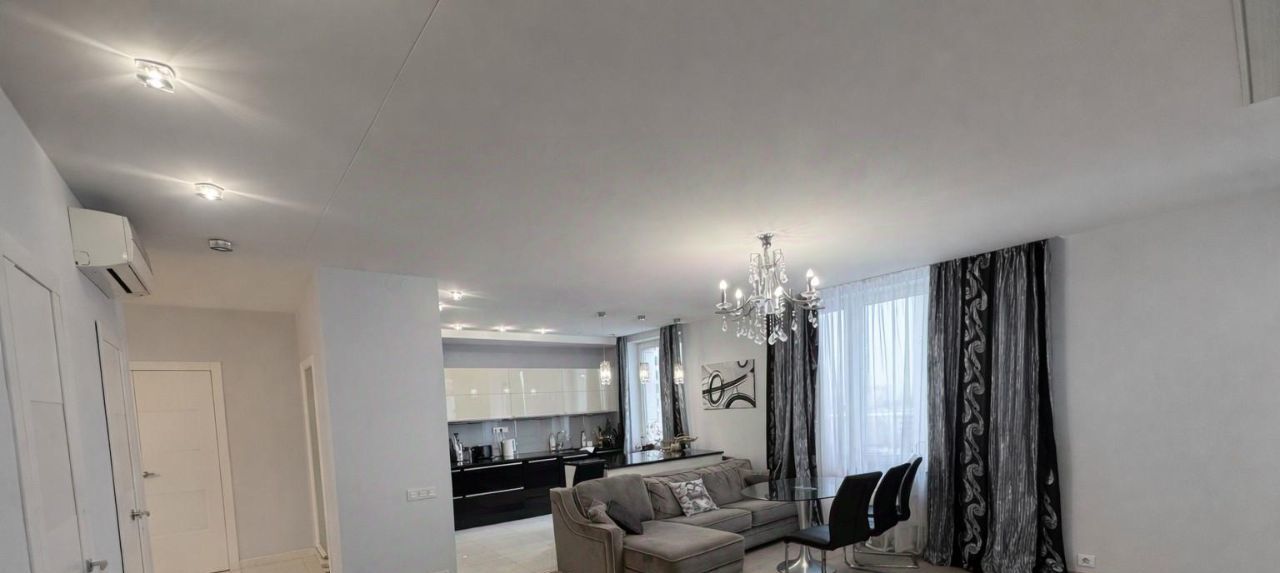 Светлая, современная квартира с продуманной планировкой: большая кухня-гостиная, две изолированные спальни, два отдельных санузла (душевая и ванная), удобный холл и зоны хранения. Все окна выходят во двор, тишина и приватность. Панорамные окна, много естественного света, качественный ремонт, квартира полностью готова к проживанию.