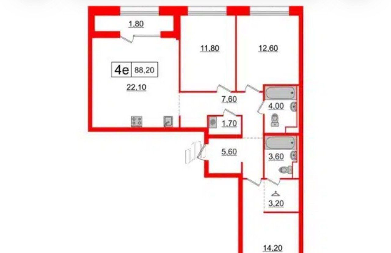 3-к кв. Санкт-Петербург ул. Тосина, 1к2 (85.0 м²)
