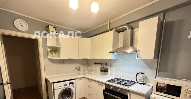На кухне присутствует вся необходимая техника: холодильник, стиральная машина, духовой шкаф, эл. чайник, варочная поверхность.