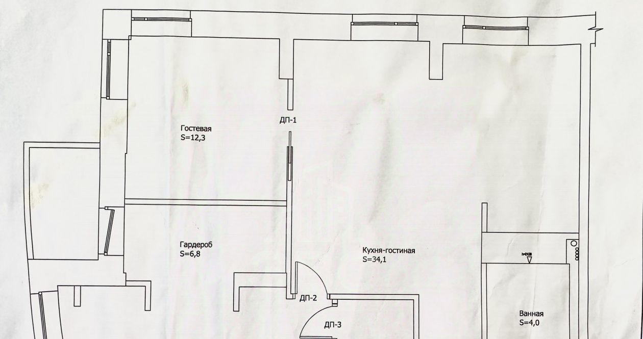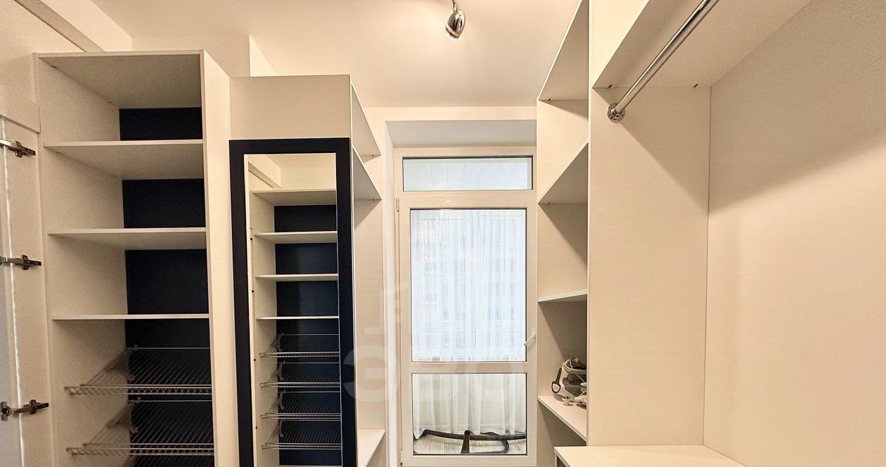 Продуманная планировка: две изолированные комнаты площадью 17 кв. м и 12,3 кв. м, большая кухня-гостиная 34 кв. м, вместительная гардеробная и два санузла. (Мастер спальня с гардеробной и санузлом)