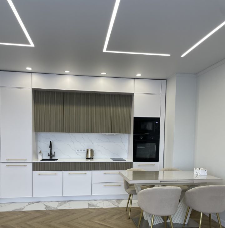 - просторная совмещенная зона кухни и зала;
