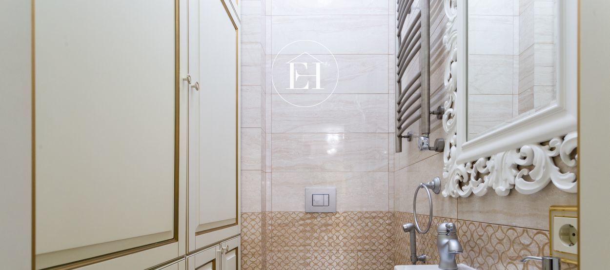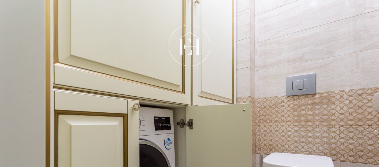 — В гостевом санузле стиральная машина встроена в шкаф, много хранения, гигиенический душ.