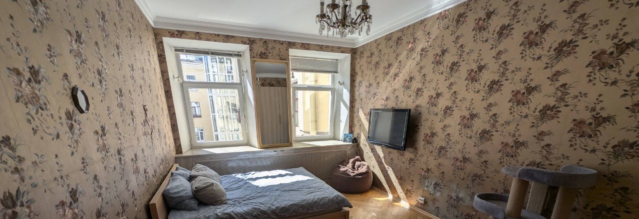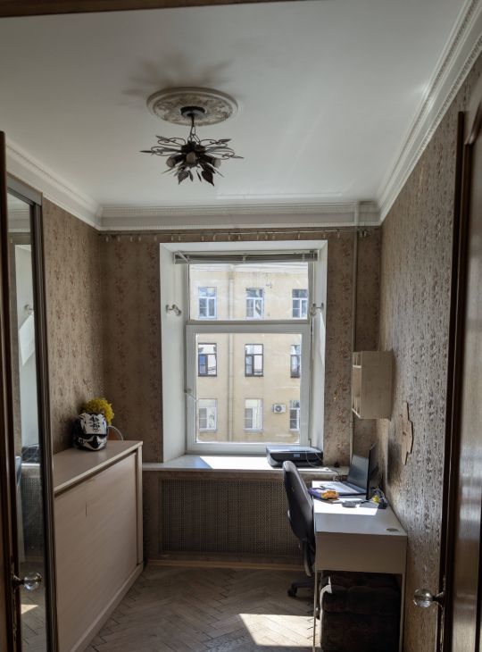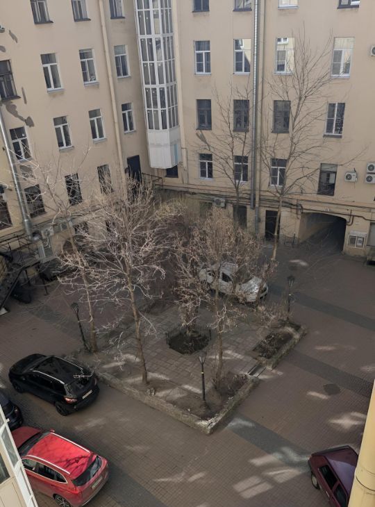 Окна выходят в закрытый двор-колодец, шума с Лиговского проспекта не слышно.