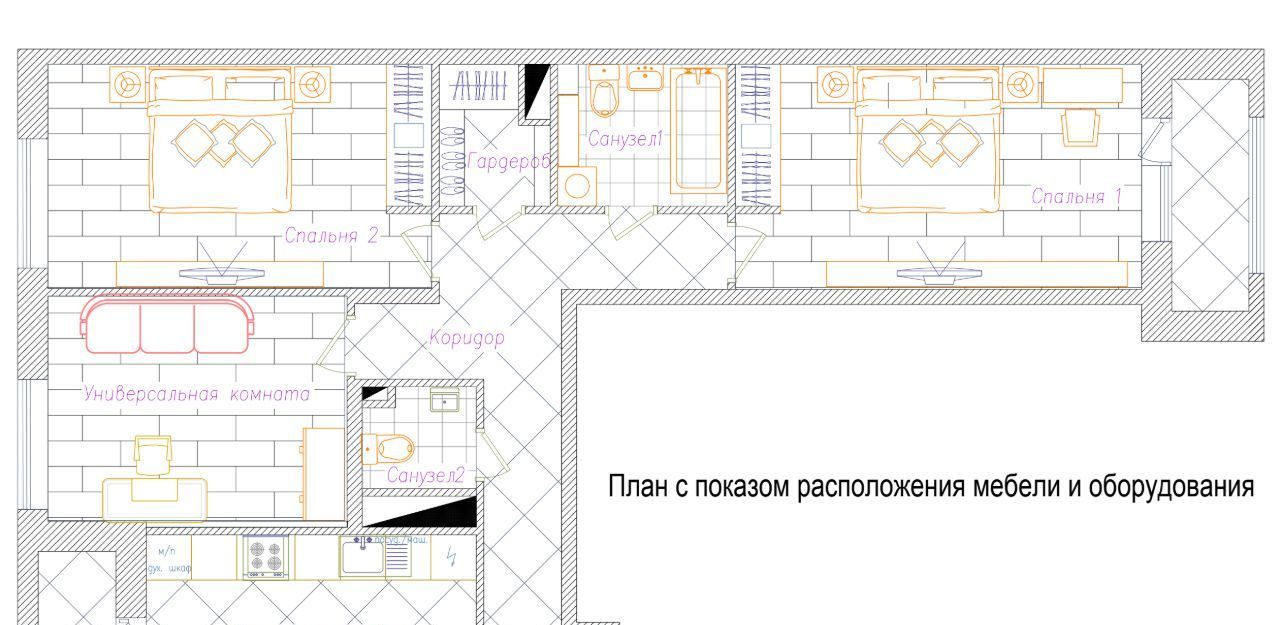 3-к кв. Санкт-Петербург Уральская ул., 25 (85.0 м²)