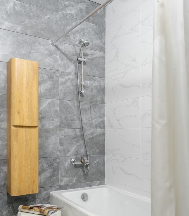 2. Два санузла: один с душевой кабиной, один с ванной.