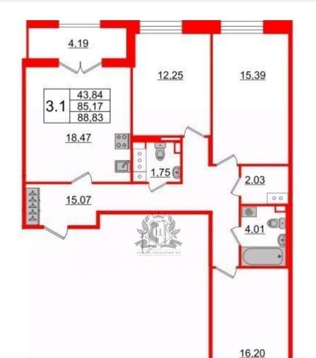 3-к кв. Санкт-Петербург Уральская ул., 25 (88.83 м²)