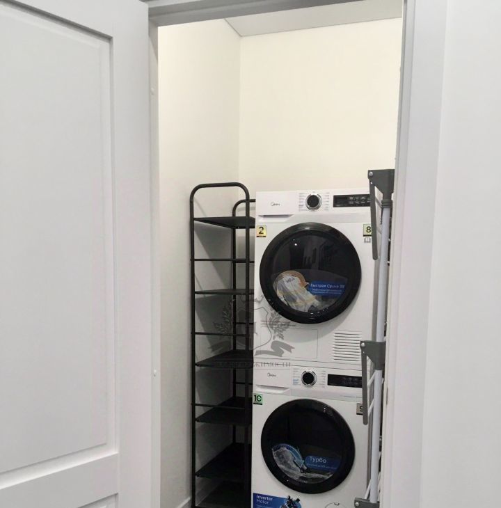 Просторный коридор в котором расположен большой шкаф для хранения вещей и одежды.Два санузла ! Один из них совмещён с ванной .Рядом расположена постирочная со стиральной и сушильной машинами .Так же в пользование предоставляется беспроводной ручной пылесос Gorenje и утюг .В каждой жилой комнате и кухне установлены Smart TV( 3 шт.) Проведён интернет.