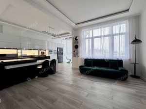 Планировка - просторная гостиная с оборудованной кухней (посуд. машина, винный шкаф и тд), спальня, гостевая спальня, санузел с душевой, гардеробная комната, кладовая.