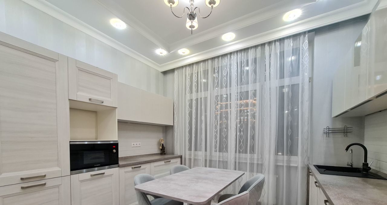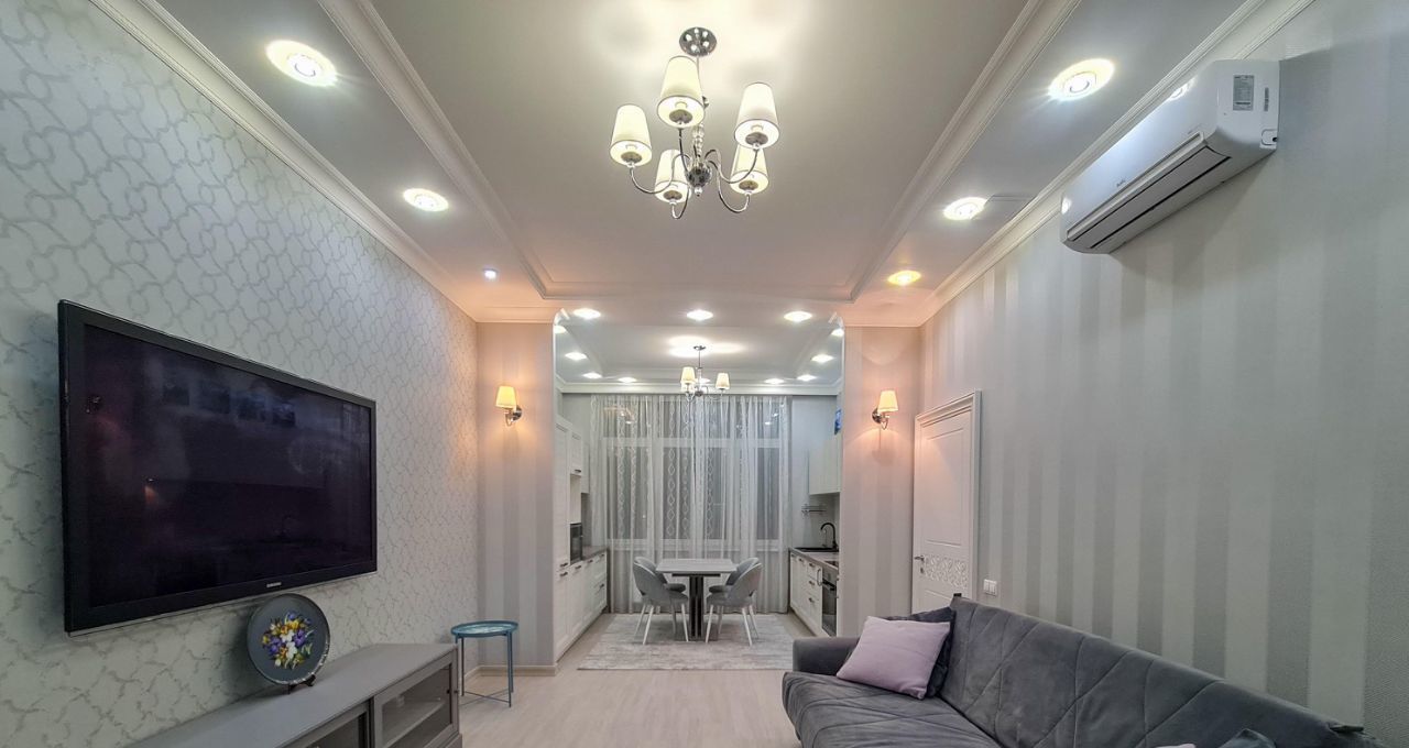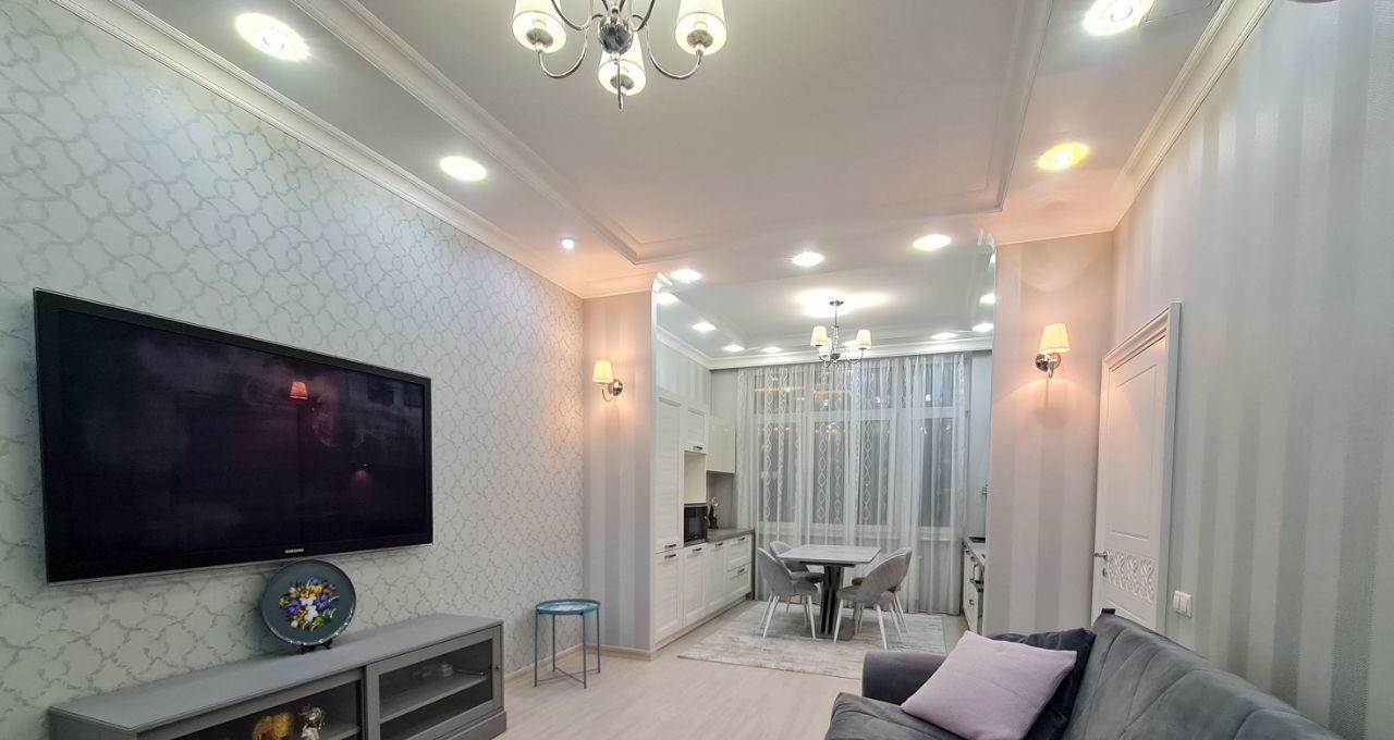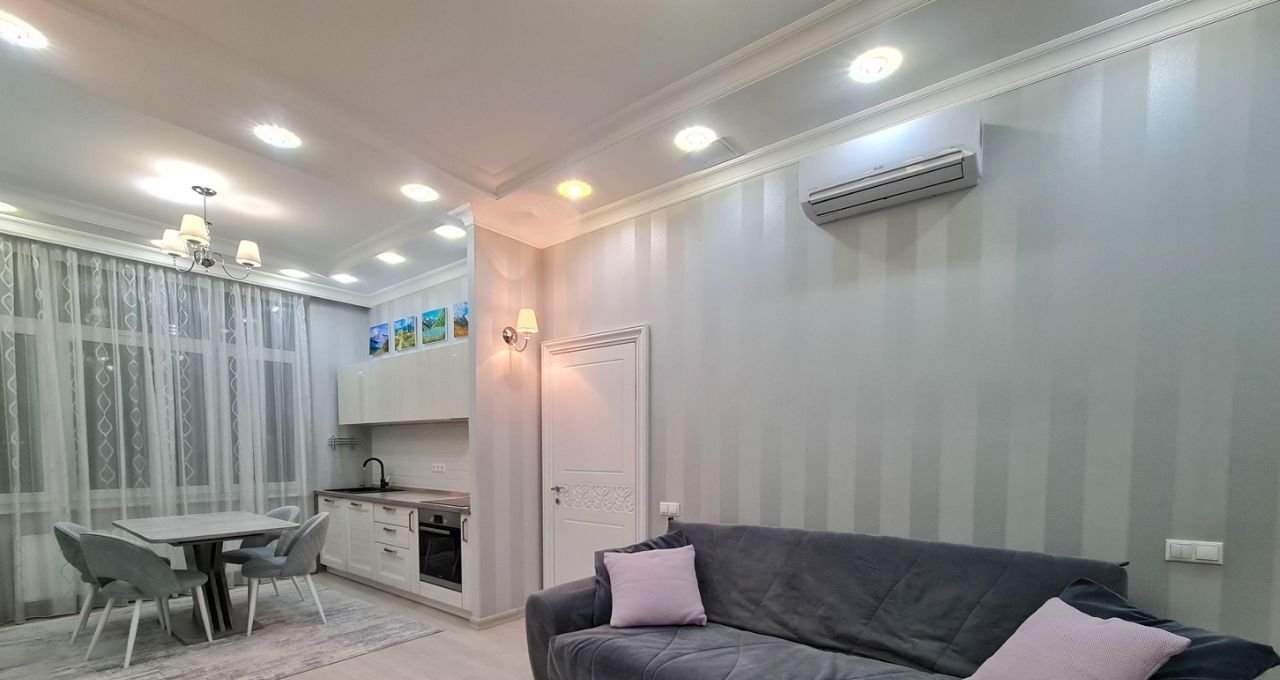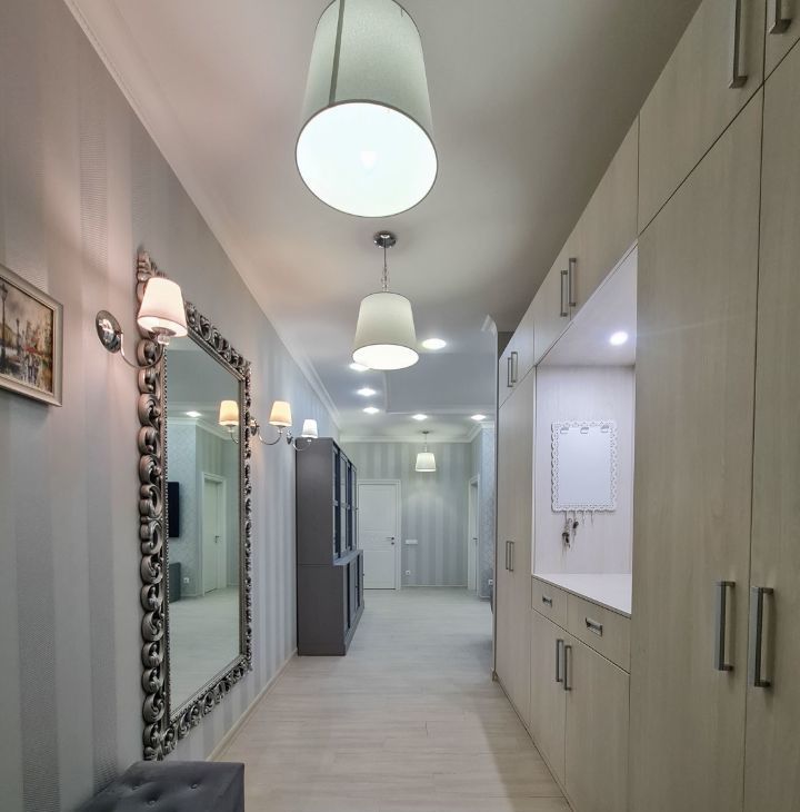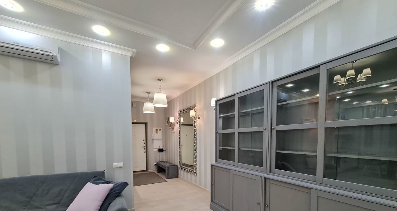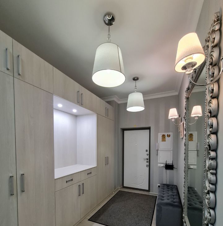 Квартира в отличном состоянии, чистая и аккуратная, укомплектована необходимой мебелью и бытовой техникой (при необходимости можем частично доукомплектовать одну из комнат). Для дополнительного комфорта имеется кондиционер, посудомоечная машина, бойлер, система фильтрации питьевой воды и подогрев пола в санузлах. Для затемнения окон предусмотрены шторы с ролетами. Подключены телевидение и интернет (WI-FI).