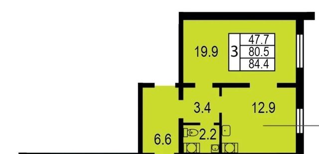3-к кв. Санкт-Петербург Витебский просп., 101к4 (80.5 м²)