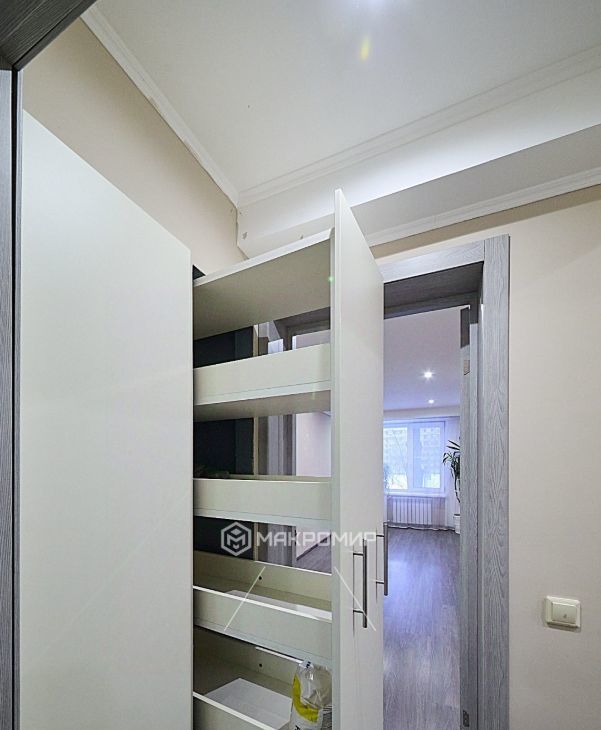 Квартира оборудована кухонным гарнитуром с варочной панелью (2 конфорки), вытяжкой, большим двухкамерным холодильником, новой стиральной машиной, обеденным гарнитуром. Есть две небольшие удобные кладовочки для хранения и вместительный шкаф в прихожей