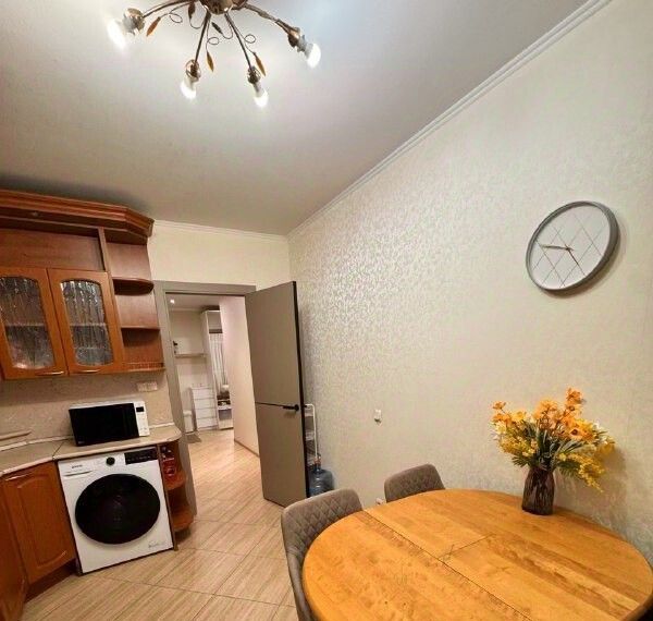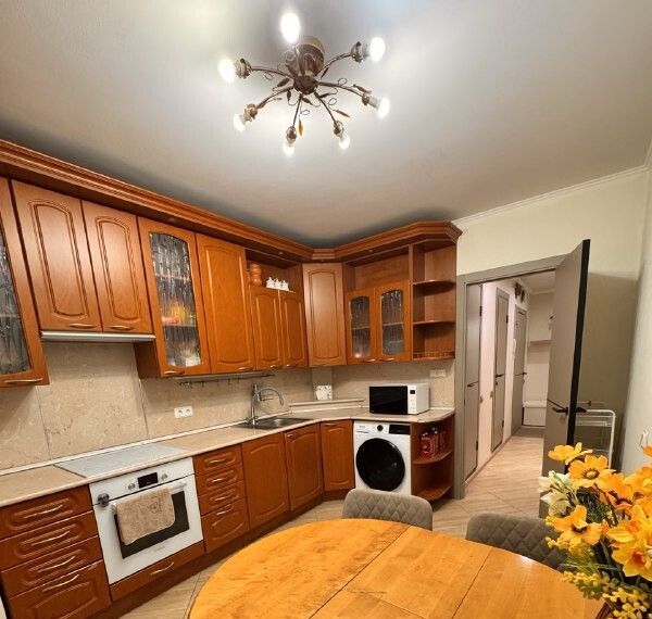 Оснащена техникой, холодильник, микроволновка, духовка, варочная плита, стиральная машина, электрический чайник.