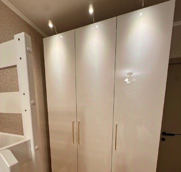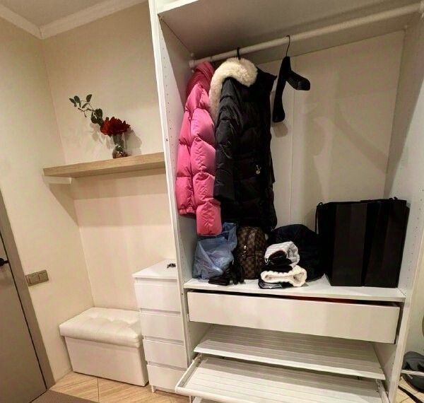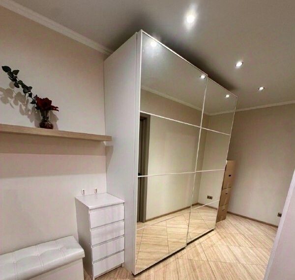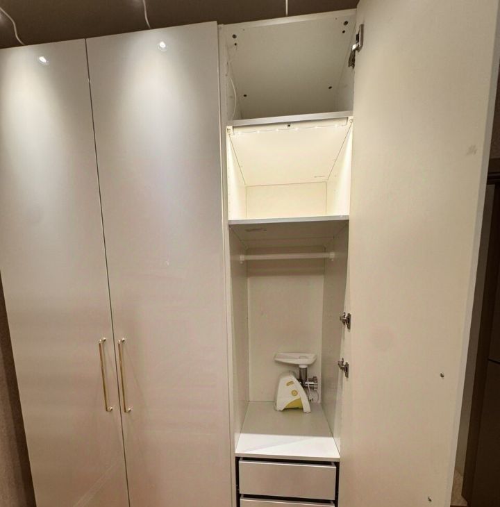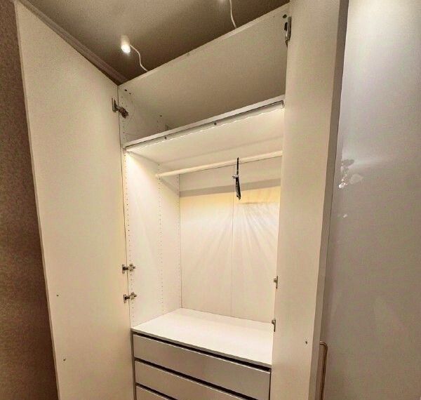 Большие шкафы в спальне и гостиной, много мест хранения.