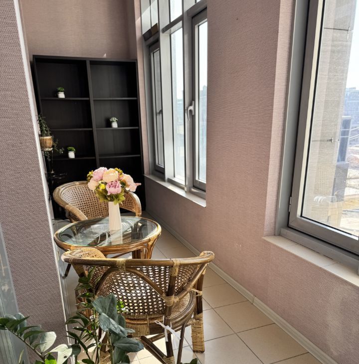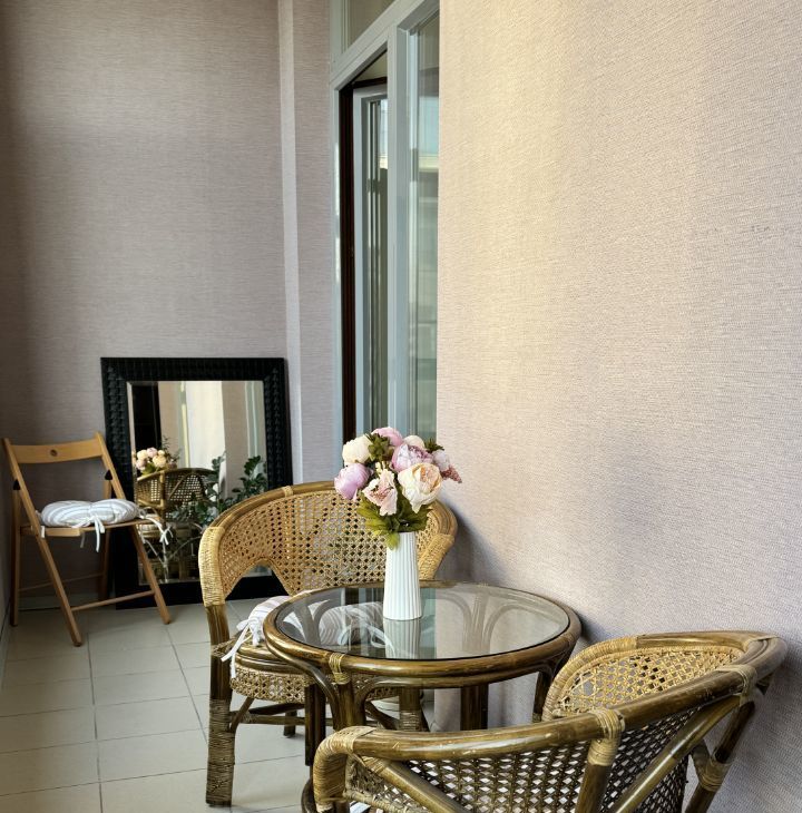 Отдельным преимуществом квартиры является просторная лоджия, которую можно использовать как уютную зону отдыха, рабочее пространство или место для утреннего кофе.