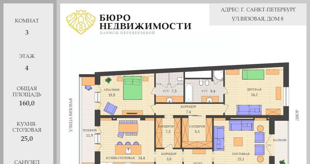 3-к кв. Санкт-Петербург Вязовая ул., 8 (160.0 м²)